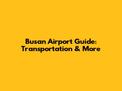 Busan Airport Guide: Transportation & More