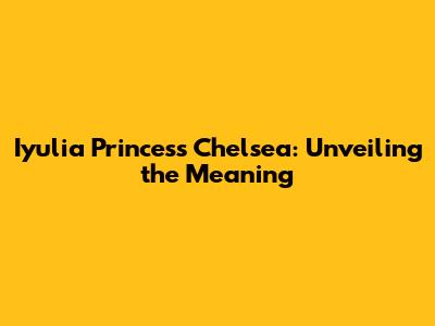 Iyulia Princess Chelsea: Unveiling The Meaning